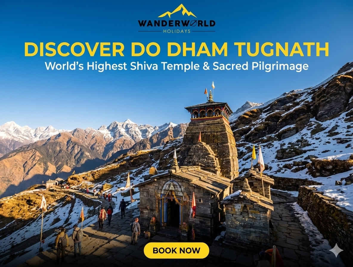 Embark on a spiritually enriching journey through the sacred lands of Uttarakhand. This Do Dham + Tungnath yatra covers Kedarnath and Badrinath, along with a trek to Tungnath, the world's highest Shiva temple. Experience divine aartis, scenic Himalayan treks, peaceful valleys, and sacred river confluences in one unforgettable spiritual adventure.