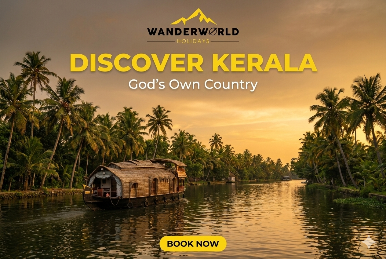 Discover the serene backwaters, lush green landscapes, and pristine beaches in God's Own Country.